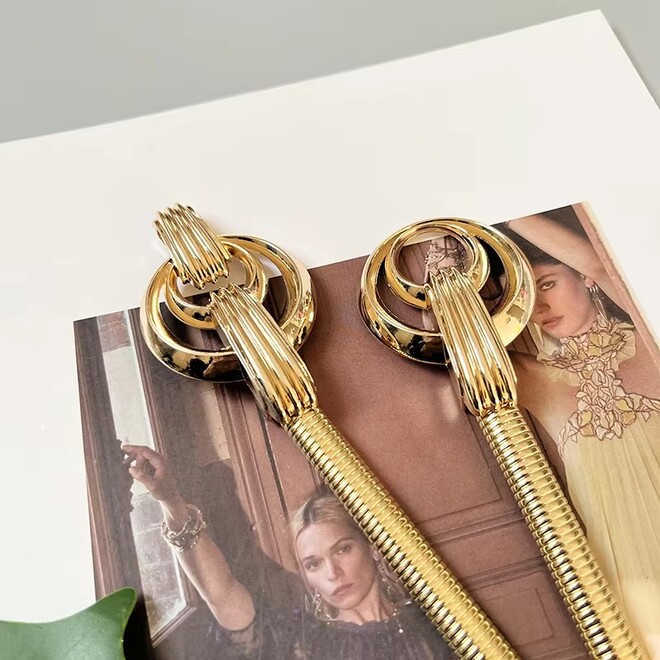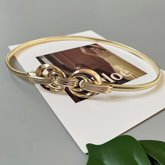 This gold chain belt set adds a subtle yet sophisticated shine to any outfit. The elastic design ensures a comfortable fit while enhancing your natural silhouette, making it an effortless accessory for both everyday wear and special occasions.