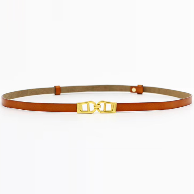 Crafted from genuine leather and finished with a polished lock buckle, this belt brings a refined vintage charm to your look. The slim design flatters your waistline while adding a subtle statement, making it an effortless piece for both everyday wear and more dressed-up occasions.