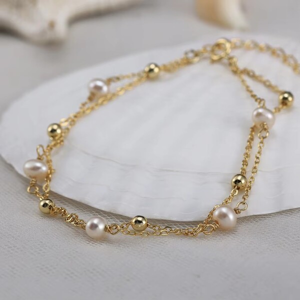 Design: Elegant Dual Chain with Lustrous Pearl Accents