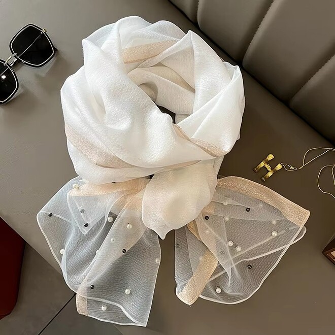 With its elegant champagne tone and smooth, silk-like feel, this scarf set adds a touch of effortless sophistication to any outfit. The neatly finished edges and fine stitching give it a clean, well-made look you can trust. Lightweight and easy to style, it’s perfect for everyday wear or as a thoughtful gift.