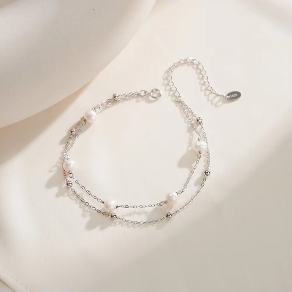 2Pcs Natural Freshwater Pearl Bracelet with Double Chain
