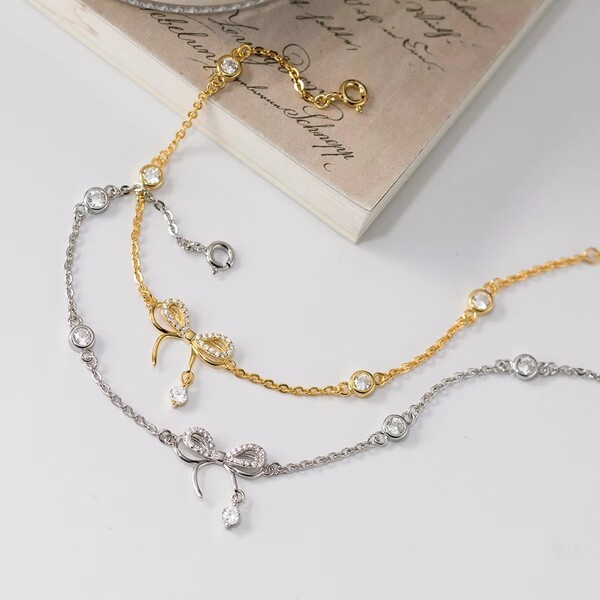 4Pcs Elegant Zirconia Ribbon Bracelet Set